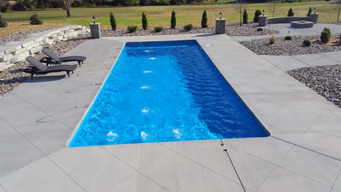 The Tropic model is our top selling large pool. The design is one of the largest one-piece fiberglass pools available on the market today. Our customers wanted a large family sized pool with lots of interior room, bench seating and our popular walk around safety ledge. The Tropic delivers all these features and more! This design features a 5 ’x 12’ tanning island with (3) built in water bubbler’s, a wrap-around deep-end seat and large shallow end steps. Play all day in the Tropic’s 3’-6’- water depth and comfortable nonskid pool bottom. All Sun Pools fiberglass shells are hand crafted using our critical point lamination system, delivering the toughest pools on the market. This model is also designed for an easily installed auto cover.